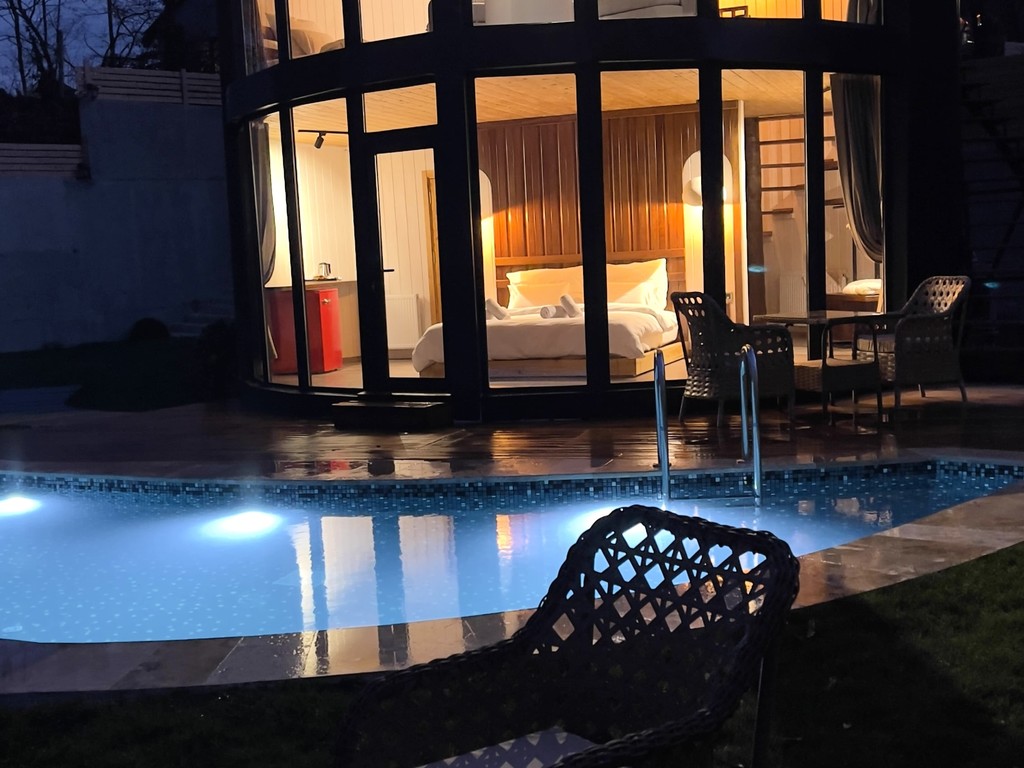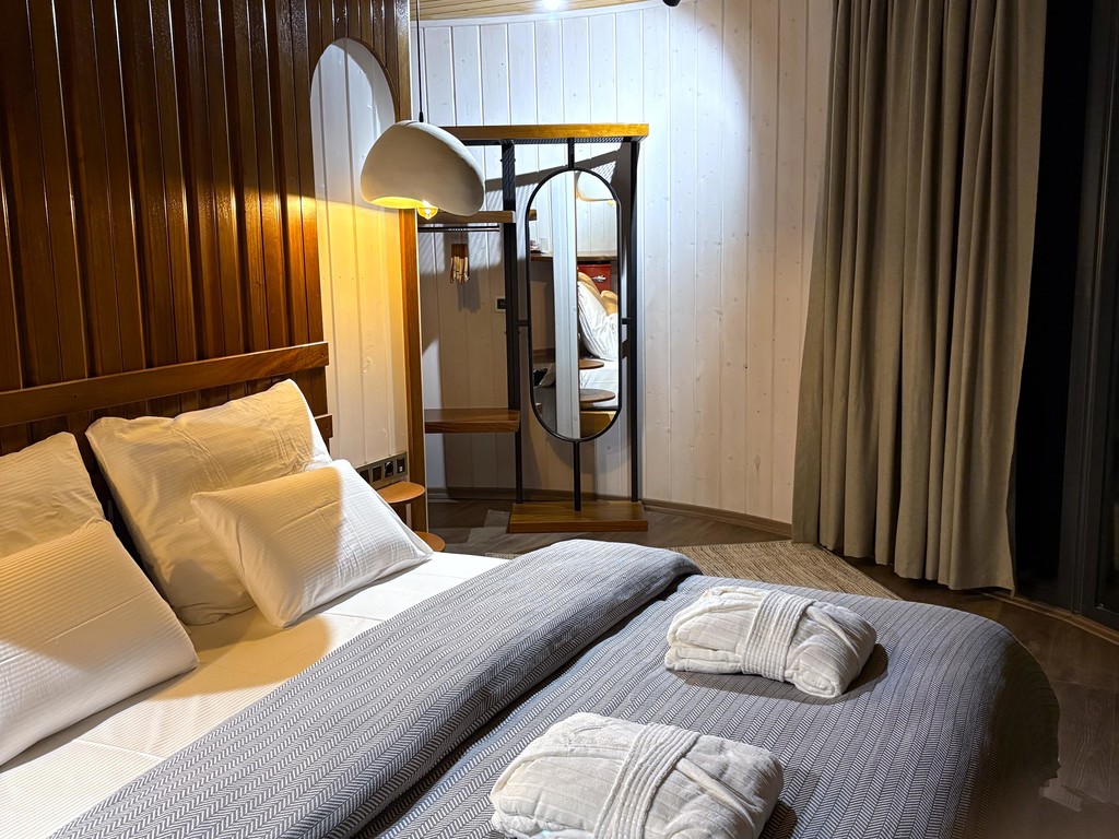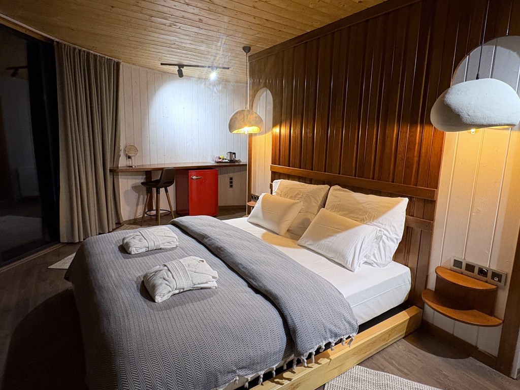 Rezervasyon YapGöl manzaralı suit bungalow iki katlı olup, ilk kat giriş bölümünde bir adet çift kişilik yatak, banyo, ayrı tuvalet yer almaktadır. İkinci katta ise iki adet tek kişilik yatak ve oturma alanı bulunmaktadır. Aynı zamanda bungalov kendine özel 150 m2 bahçeye sahip olup içerisinde 35 m2 ısıtmasız havuzu ve bahçe oturma da bulunmaktadır.